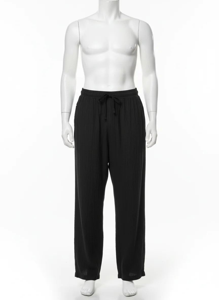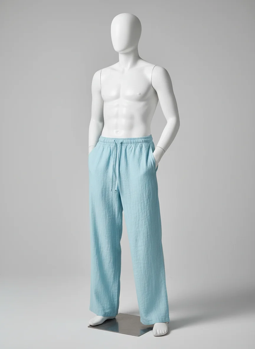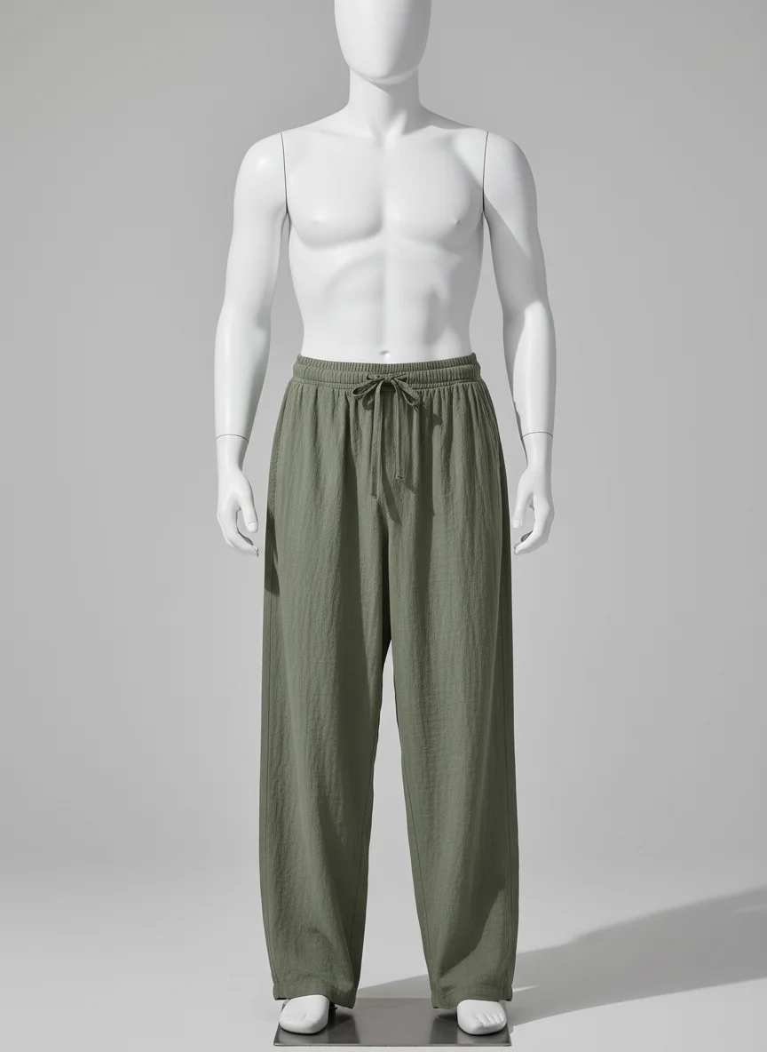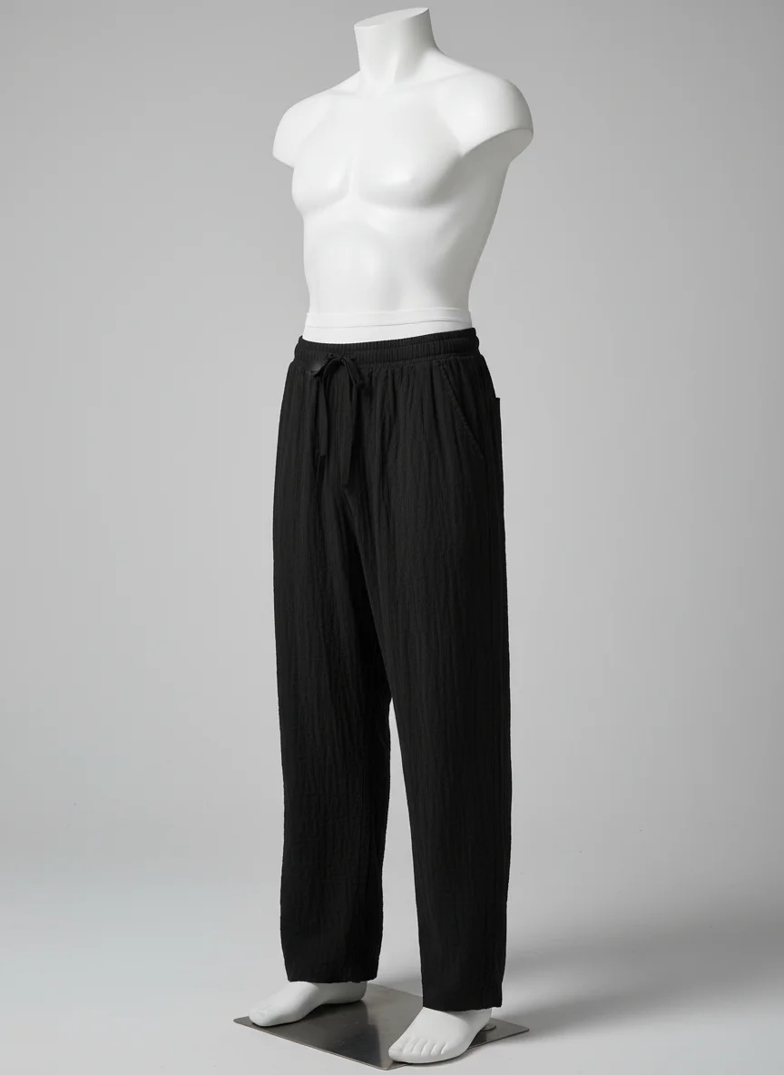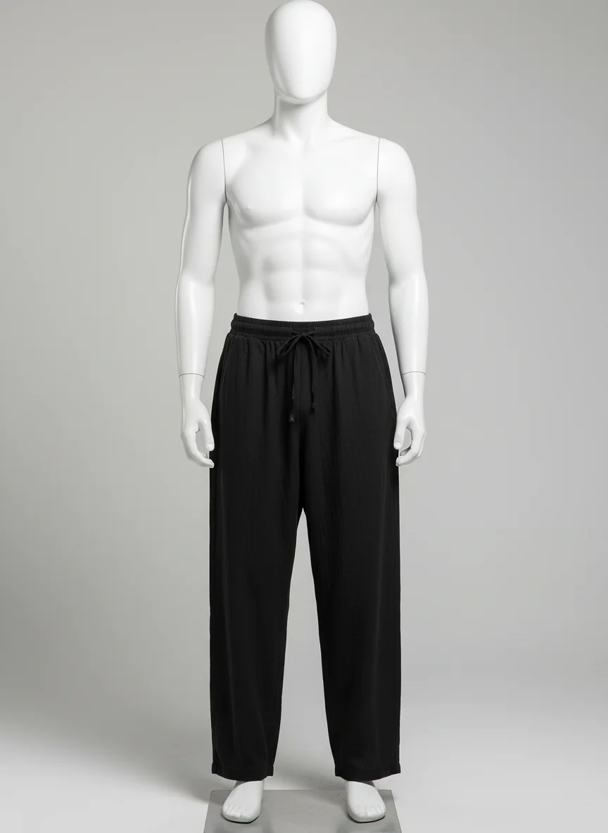 L’alliance du coton et du lin permet de créer des tenues variées, allant du look de plage au style urbain décontracté. Des finitions soignées avec un cordon de serrage garantissent un ajustement parfait pour toutes les morphologies.
