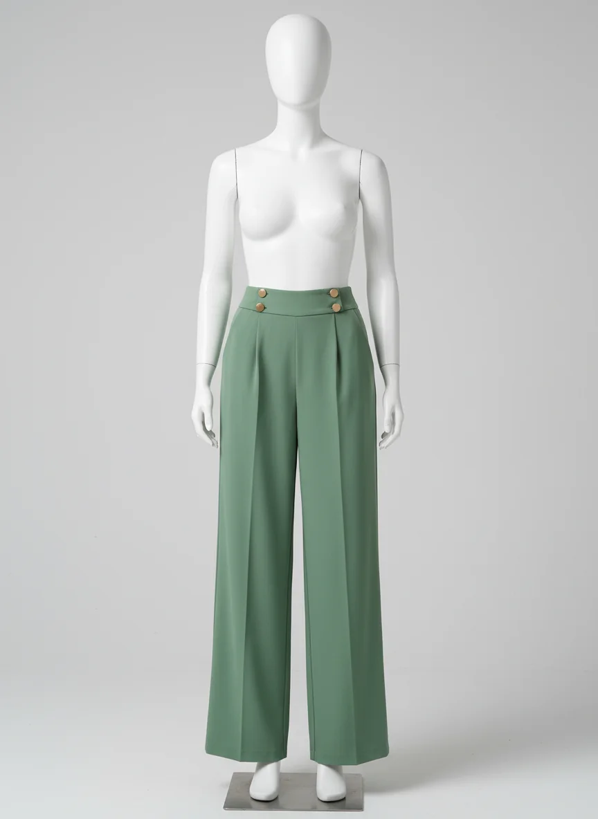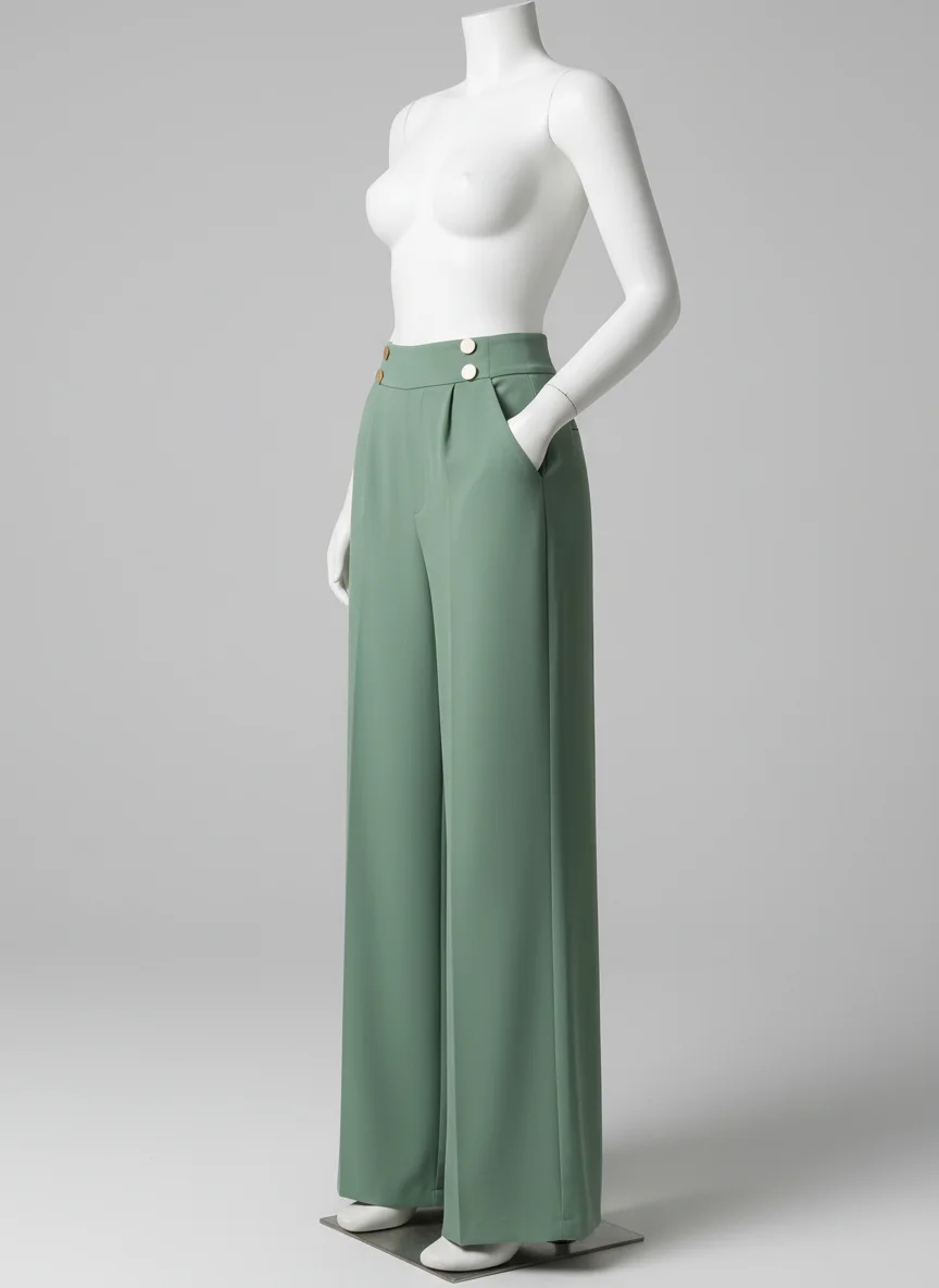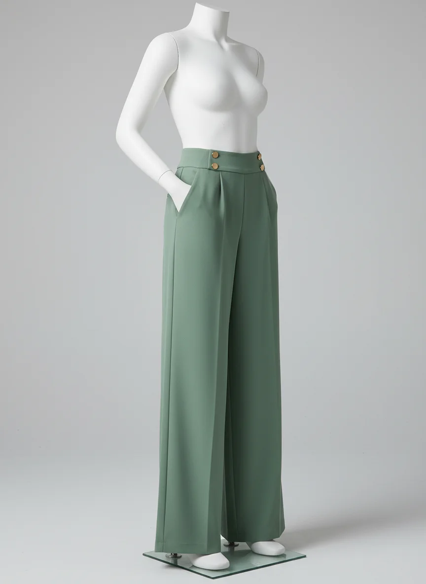 Des coupes droites associées à des tailles hautes permettent de structurer la silhouette avec subtilité. Des détails de boutons décoratifs et une texture lisse transforment un pantalon de bureau en pièce de mode, idéale pour les journées actives nécessitant une tenue impeccable.