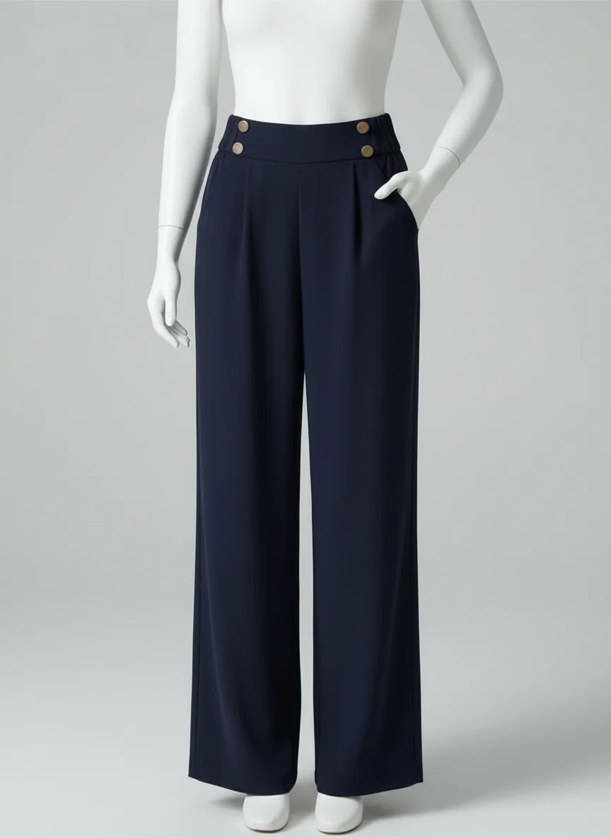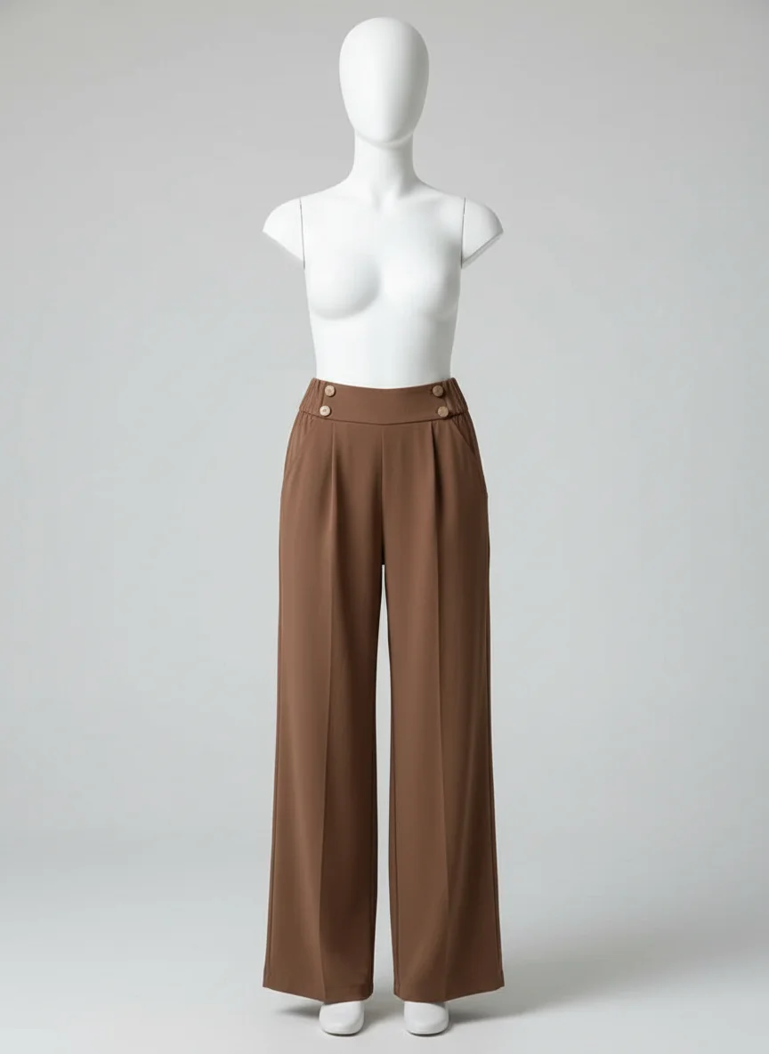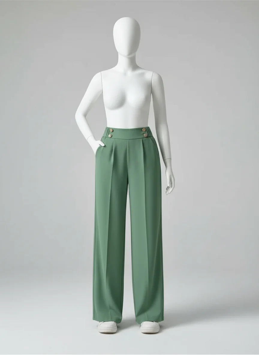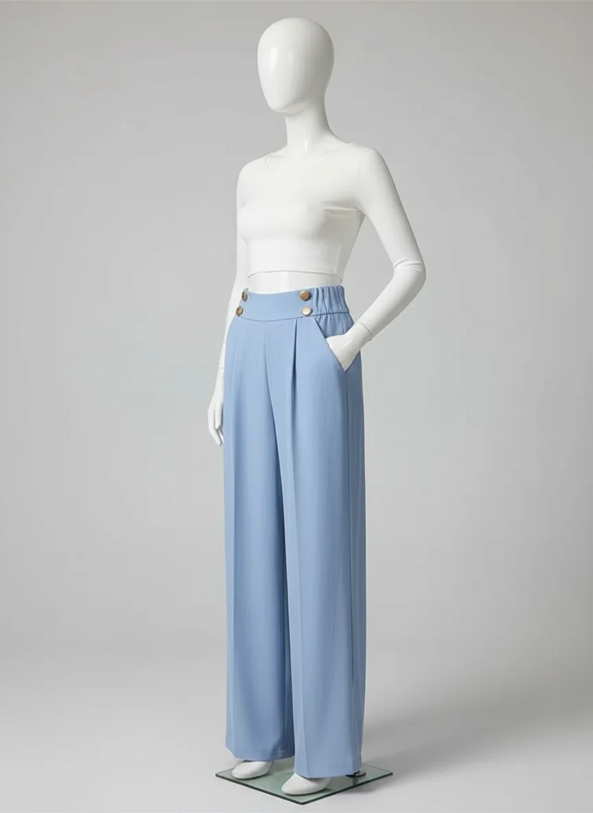 Des coupes droites associées à des tailles hautes permettent de structurer la silhouette avec subtilité. Des détails de boutons décoratifs et une texture lisse transforment un pantalon de bureau en pièce de mode, idéale pour les journées actives nécessitant une tenue impeccable.