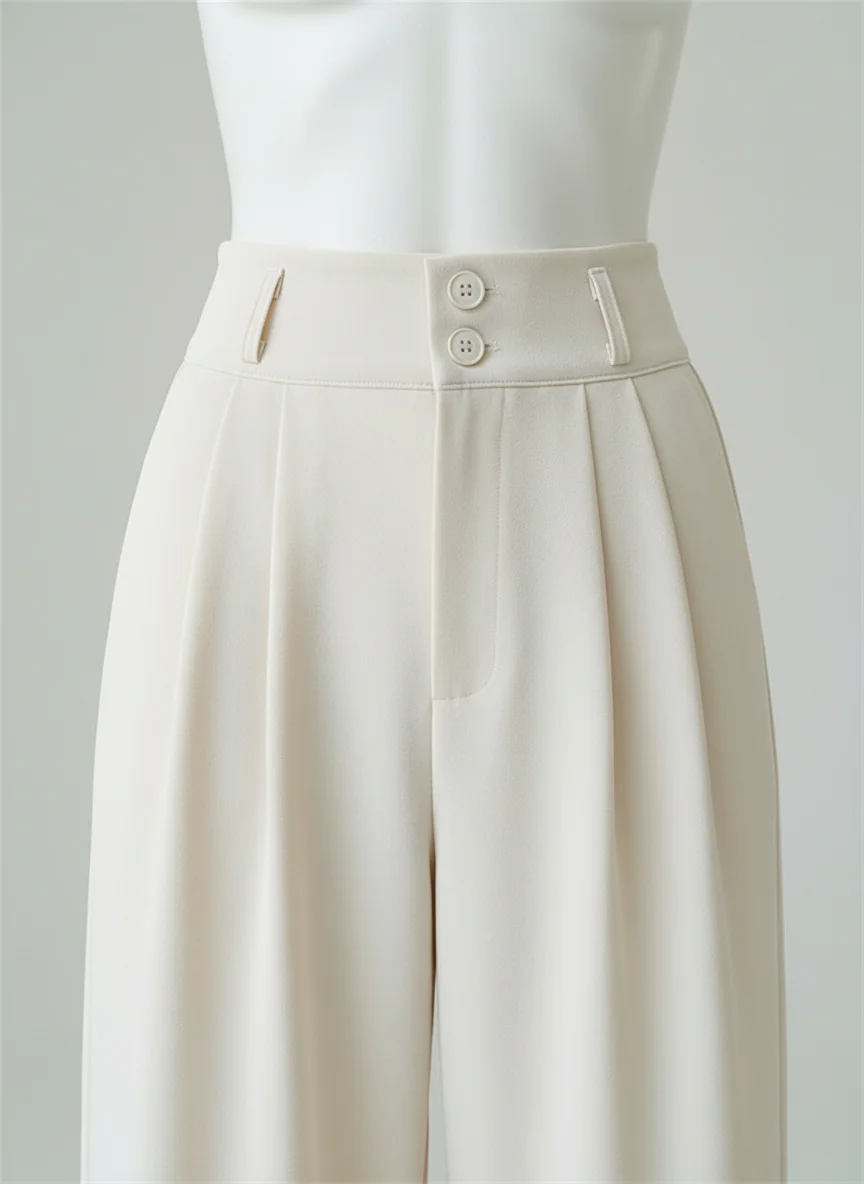 Des boutons décoratifs apportent une touche de modernité à une pièce incontournable de la garde-robe féminine contemporaine. Pour les journées ensoleillées, un pantalon blanc léger femme reste le choix idéal afin d’allier fraîcheur et raffinement intemporel.