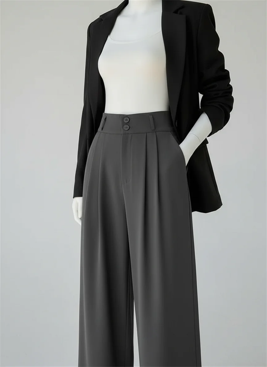 Les coupes fluides et épurées redéfinissent l’élégance quotidienne au bureau comme lors des sorties citadines. Un Pantalon léger offre une liberté de mouvement exceptionnelle tout en structurant la silhouette grâce à une taille haute marquée qui allonge les jambes.