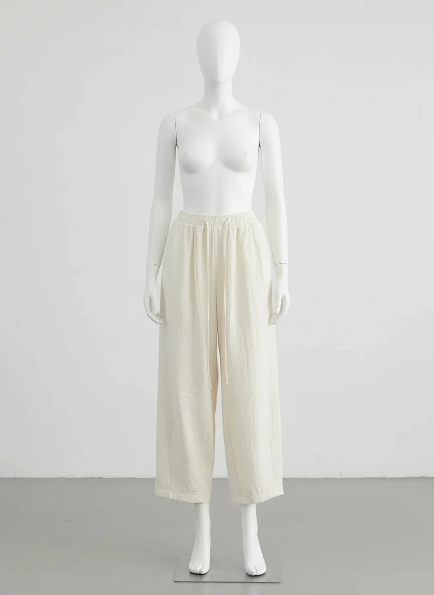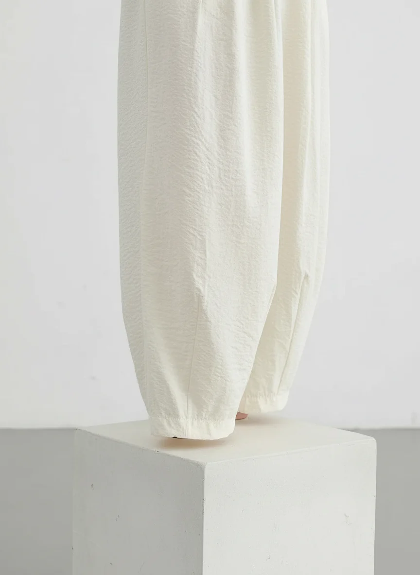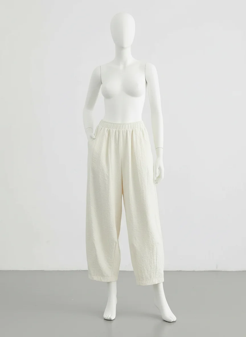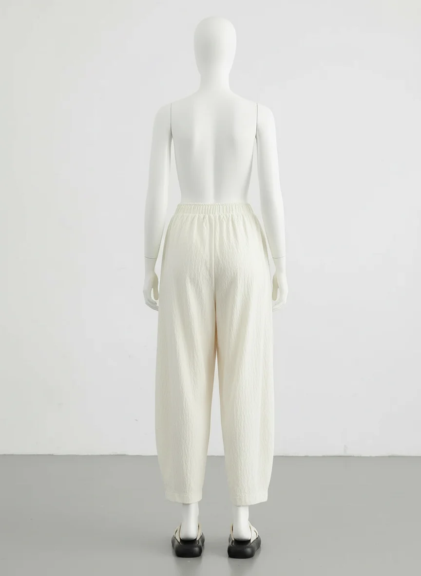 Des finitions plissées apportent une texture visuelle unique à une tenue quotidienne. Pantalon léger indispensable du vestiaire moderne, il s’adapte à toutes les morphologies pour un look décontracté et soigné.
