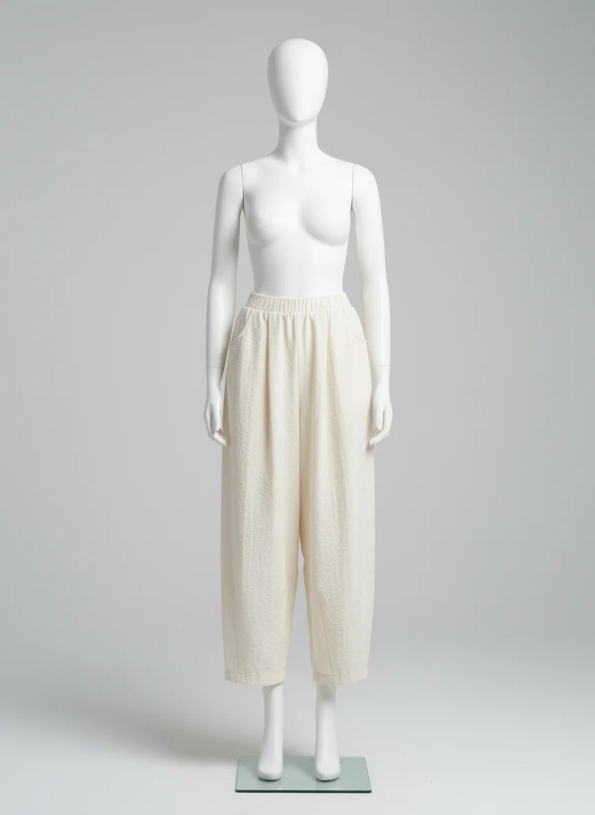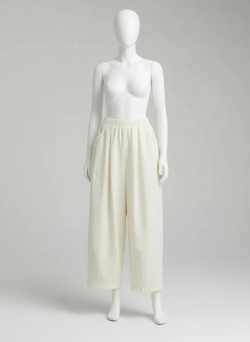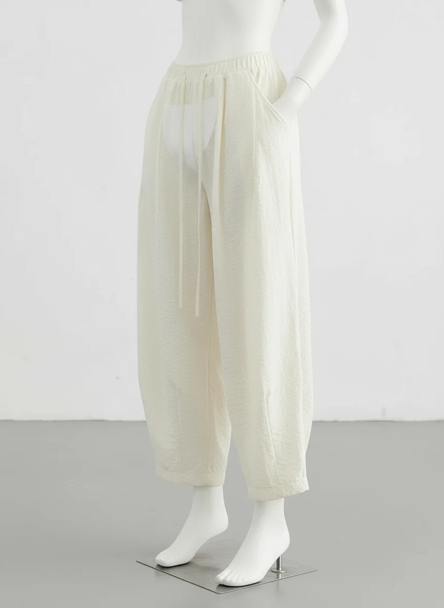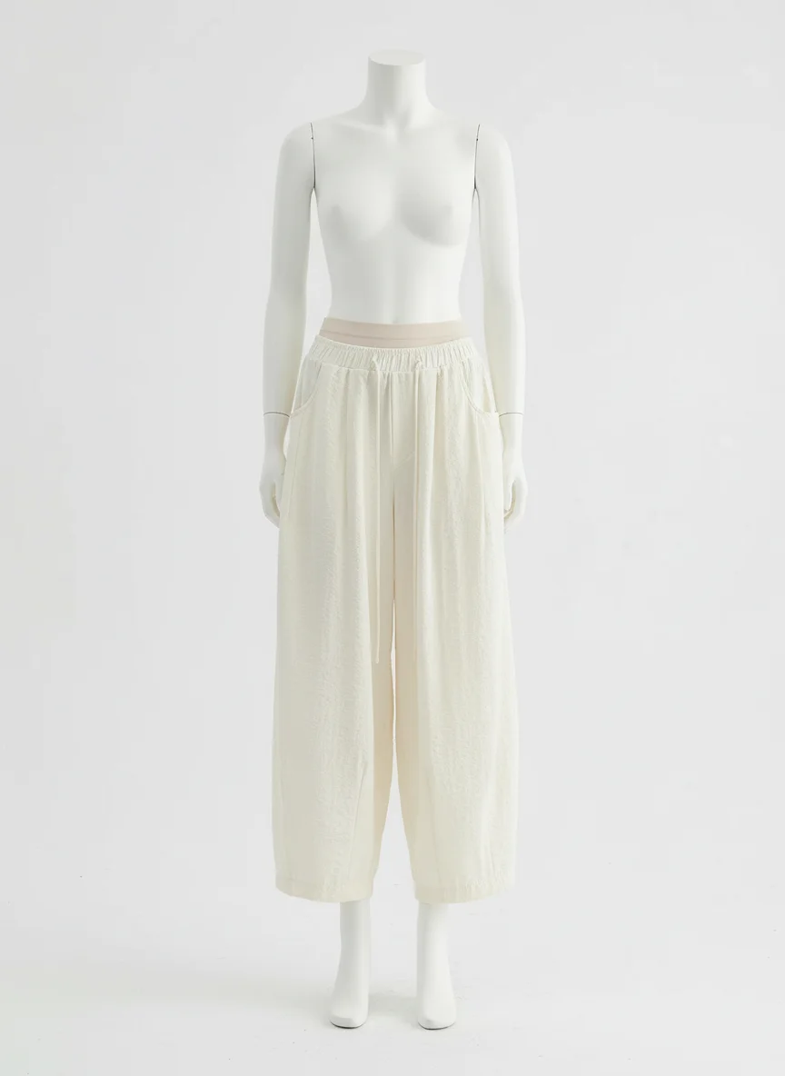 Des finitions plissées apportent une texture visuelle unique à une tenue quotidienne. Pantalon léger indispensable du vestiaire moderne, il s’adapte à toutes les morphologies pour un look décontracté et soigné.